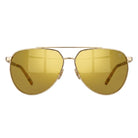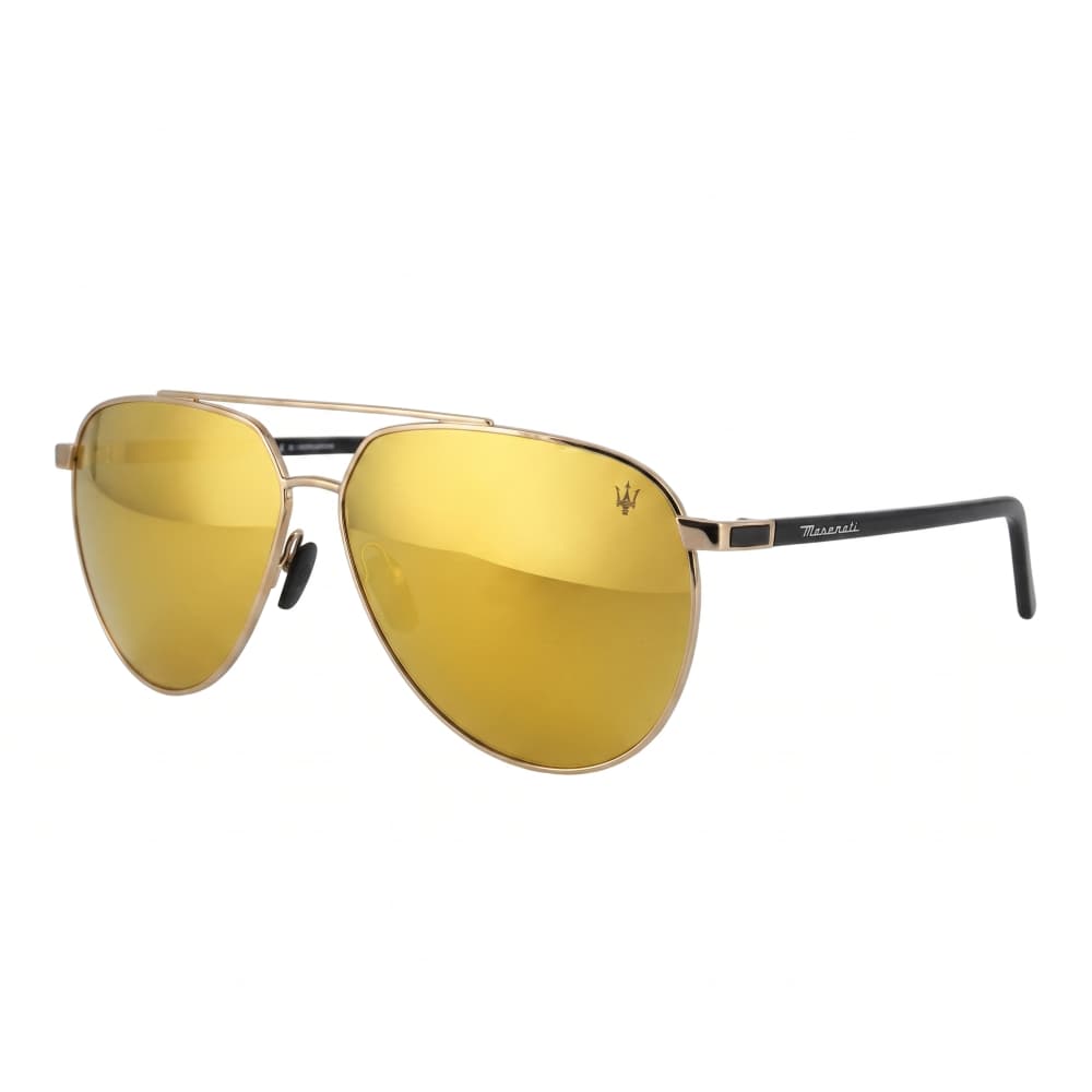 Les lunettes de soleil Maserati 8968 Doré sont des solaires pour homme en métal doré issues de la collection Maserati. Elles sont équipées de verres polarisés gris de catégorie 3 avec un traitement "miroir Or" et d'un traitement anti-reflet face interne. Logo Maserati gravé sur le haut du verre gauche.