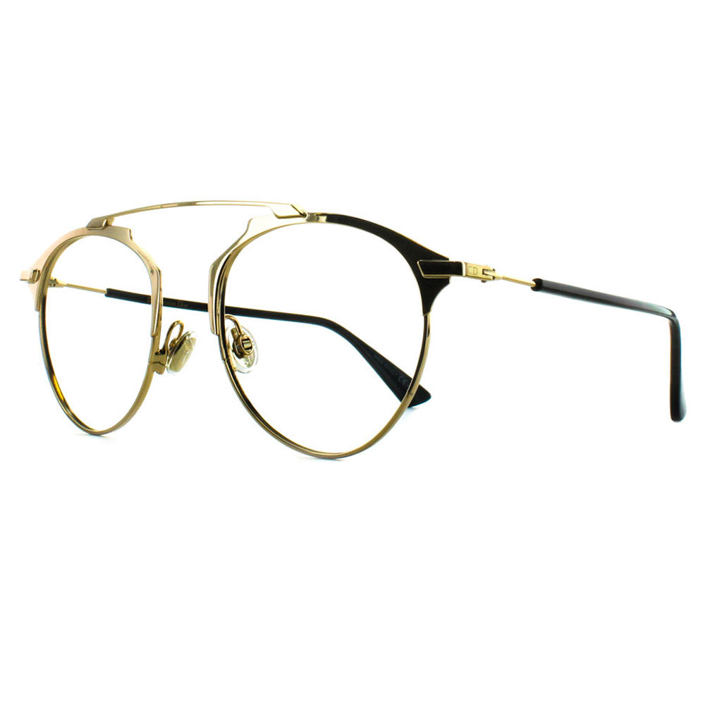 The Dior SoRealO Doré Glasses are available in anti-blue light glasses with Cool Blue coated rest lenses or in reading glasses with decreasing lenses for presbyopia corrections from +1.00 to +3.50.